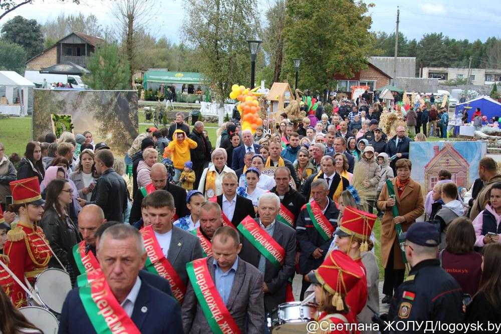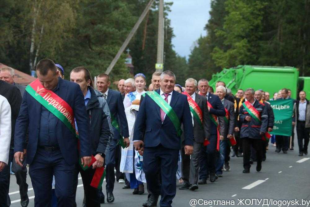 В начале к собравшимся обратился глава района Александр Ласевич. Он отметил, что общий каравай Логойщины в этом году составляет более 61,5 тысячи тонн зерна, что больше прошлогоднего. Свой вклад внесли все хозяйства Логойщины, но самые весомые результаты у СК "Логойский", где получено более 12 тысяч тонн зерна, ОАО "Нестановичи-Агро" (более 8 тысяч тонн) и ОАО "Косино" (7,9 тыс. т).