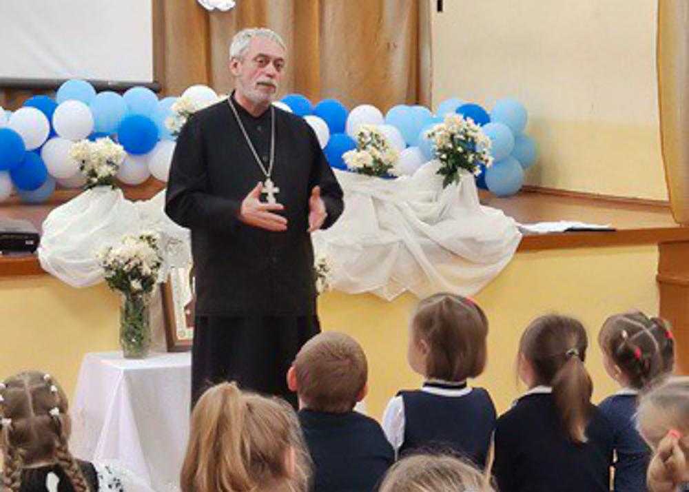 А в Октябрьскую школу на утренник 14 октября пришли прихожане местного храма святителя Николая Чудотворца вместе с настоятелем – иереем Сергием Солодышевым.