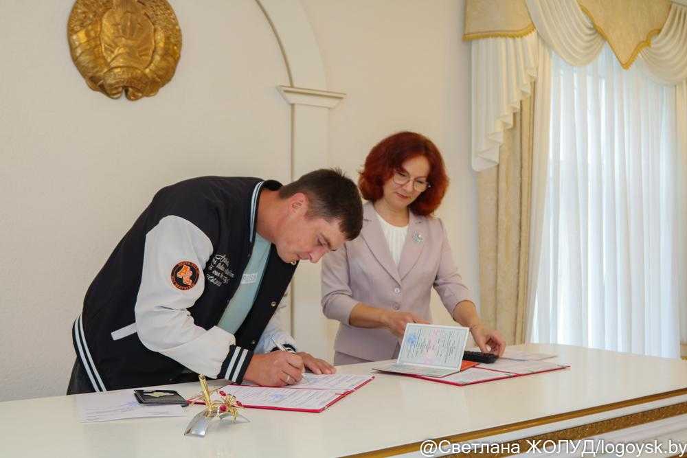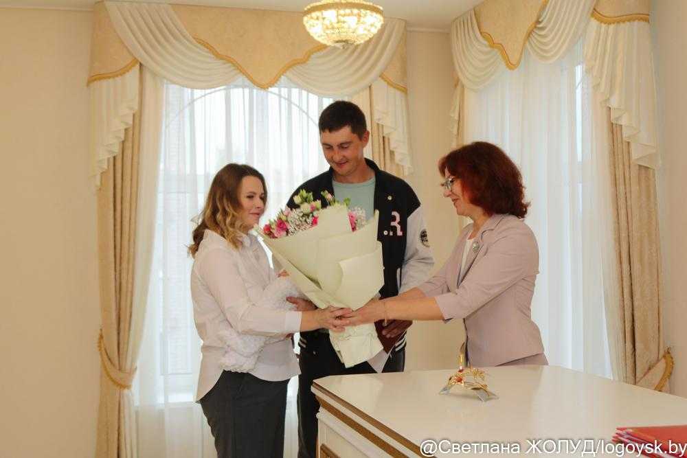 Неделя родительской любви для семьи Реут из Логойска действительно стала особенной, ведь 8 октября на свет появилась их доченька Василиса. Со счастливым семейством я встретилась в ЗАГСе. Там свой первый документ – свидетельство о рождении маленькая логойчанка и ее родители Дмитрий и Виктория получали в торжественной обстановке под звуки музыки и слова поздравления от начальника отдела Марины Селявко.