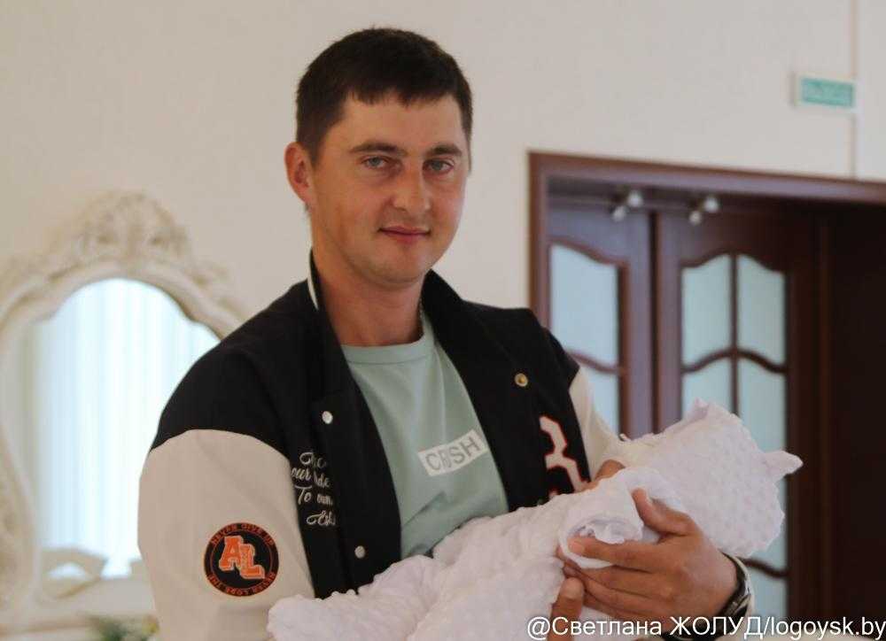 После церемонии, пока малышка тихо спала на руках у папы нам удалось немного побеседовать. Оба родителя логойчане, их история любви началась пять лет назад со знакомства на дискотеке, спустя три года молодые люди сыграли свадьбу.