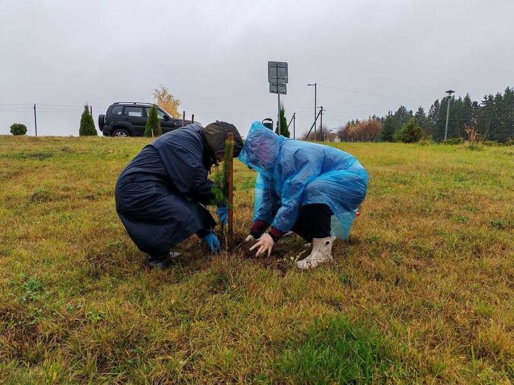 Нужно сказать, что участники субботника также обновили посадки рядом с садиком. Заменили неприжившиеся деревья.