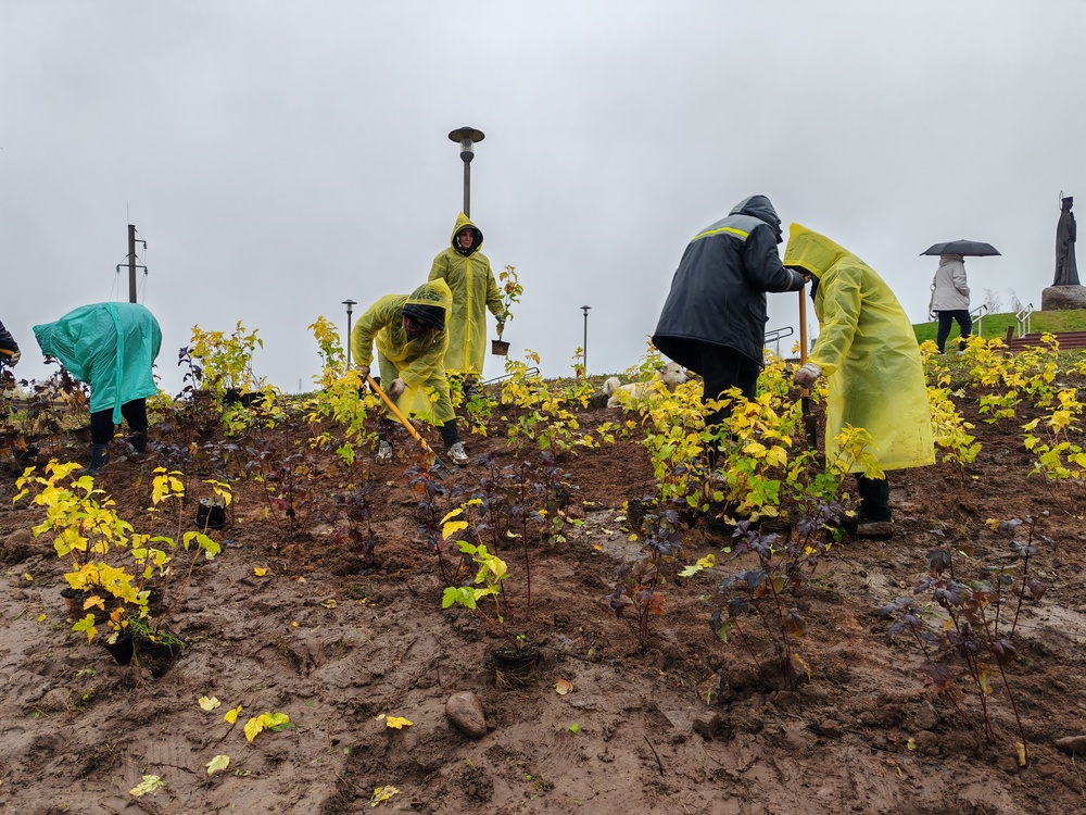 Там была подготовлена и спланировано площадка под посадку декоративных кустарников, чем и занимались сегодня работники Логойского комхоза и инспекции природных ресурсов и охраны окружающей среды.