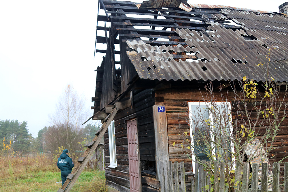Чуть больше месяца прошло с того момента, как дом 74 по ул. Октябрьской в Плещеницах попал в пожарную сводку. Знакомый хозяина попросился переночевать, а в этот момент другой знакомый «подшофе», выкурив сигарету, ушел. При этом парень даже не заметил, что окурок упал в одеяло, которое начало тлеть. Да так, что стена в одном месте прогорела насквозь, а бревна, выгорев внутри, помогли огню добраться до крыши. Тогда чудом удалось избежать трагедии – прохожие вовремя сообщили пожарным.