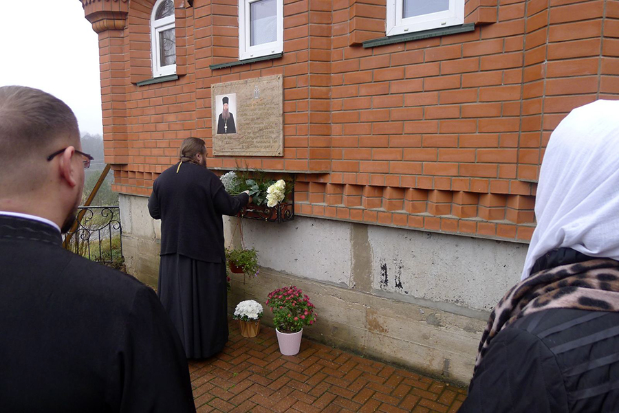 У памятной доски в честь приснопоминаемого священника владыка Амвросий совершил заупокойную молитву и возложил цветы.