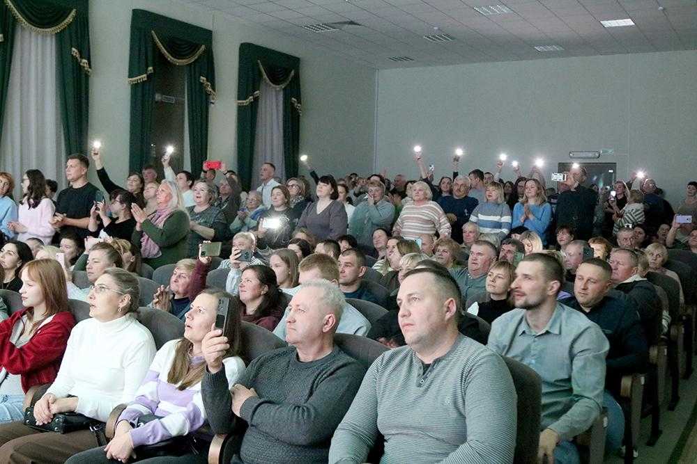 А вот завершение концерта было традиционным: зал встал под песню, которая стала визитной карточкой "Драздоў". "Не прадаецца хата бацькоў" - дружно пели плещенцы. И зал расцветал от улыбок людей и огоньком их телефонов.