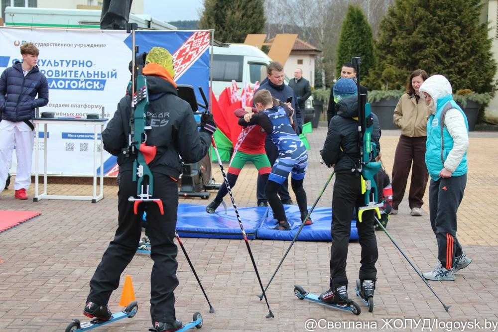 Спортивная школа и ФОЦ «Логойск» развернули настоящую интерактивную площадку. Все желающие могли попробовать свои силы на лыжероллерах, позаниматься на тренажерах, проверить ловкость на матах и силу с гантелями.