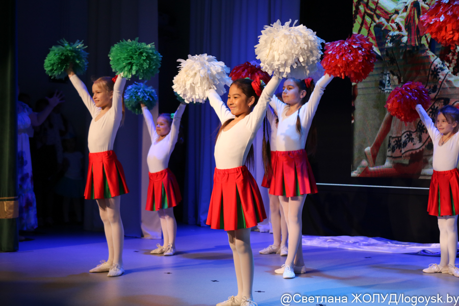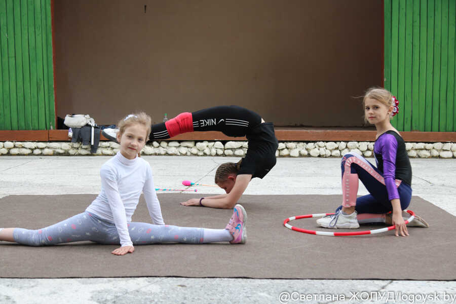 Тут показательные выступления организовали девочки, посещающие секцию художественной гимнастики в ФОЦ «Скарб». Их руководитель Ирина Сакевич рассказала, что дети на занятия приходят в юном возрасте, чтобы уже к 8-10 годам показывать результаты. Акробатические трюки и целые гимнастические композиции – с мячом, обручем, булавами – не могли оставить равнодушными зрителей разных возрастов. И даже малыши, которые только что сами танцевали на сцене, смотрели на старших товарищей, раскрыв рот.