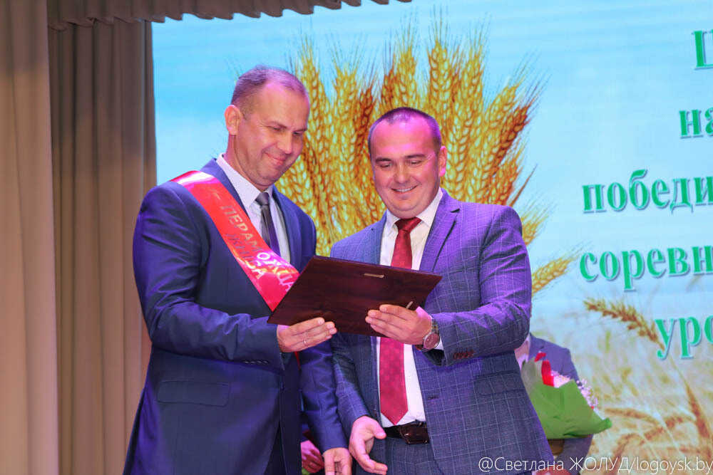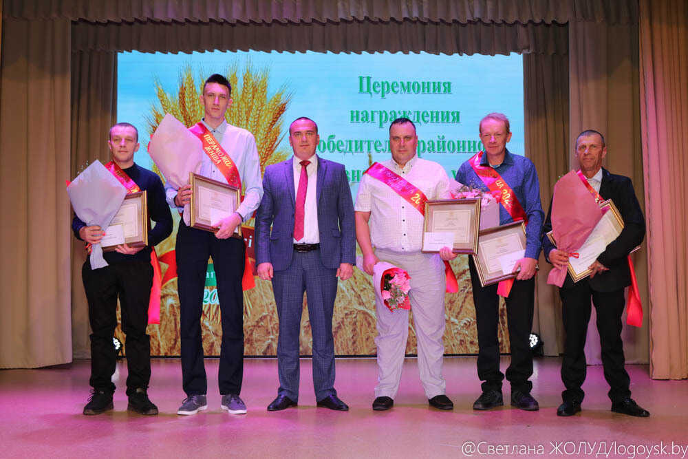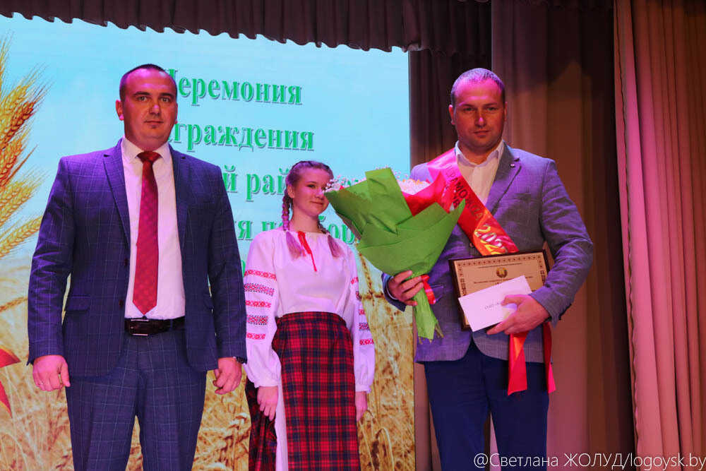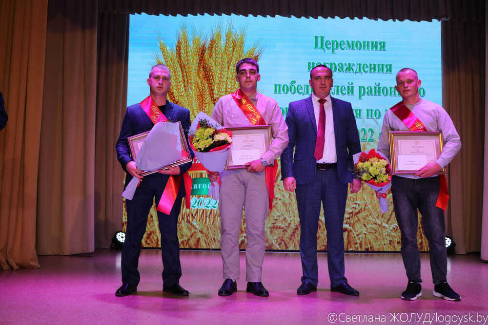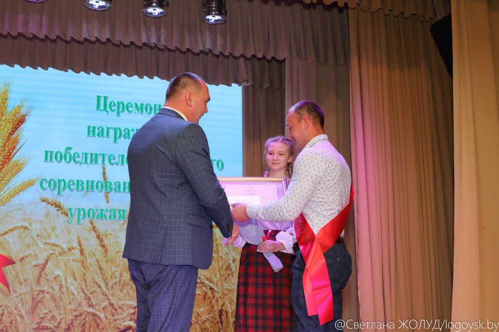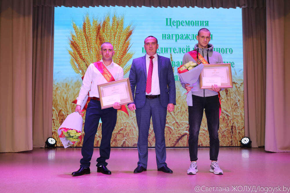 А пока вернемся в зал РЦК, где на сцену один за другим поднимались победители районного соревнования на жатве. Среди хозяйств тройка лидеров в этом году выглядит так: СК "Логойский", ОАО "Косино", СК "Трайпл-Агро".