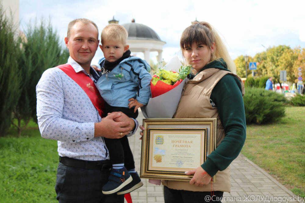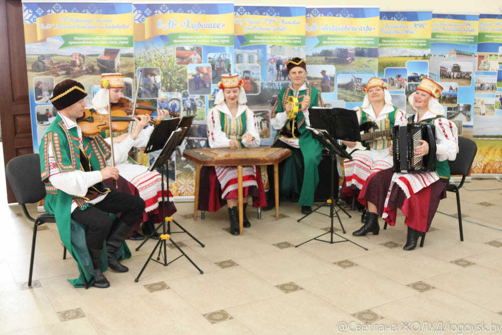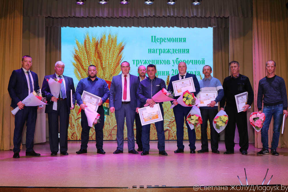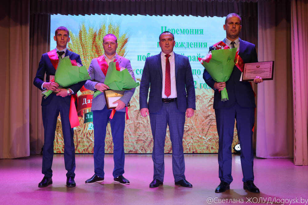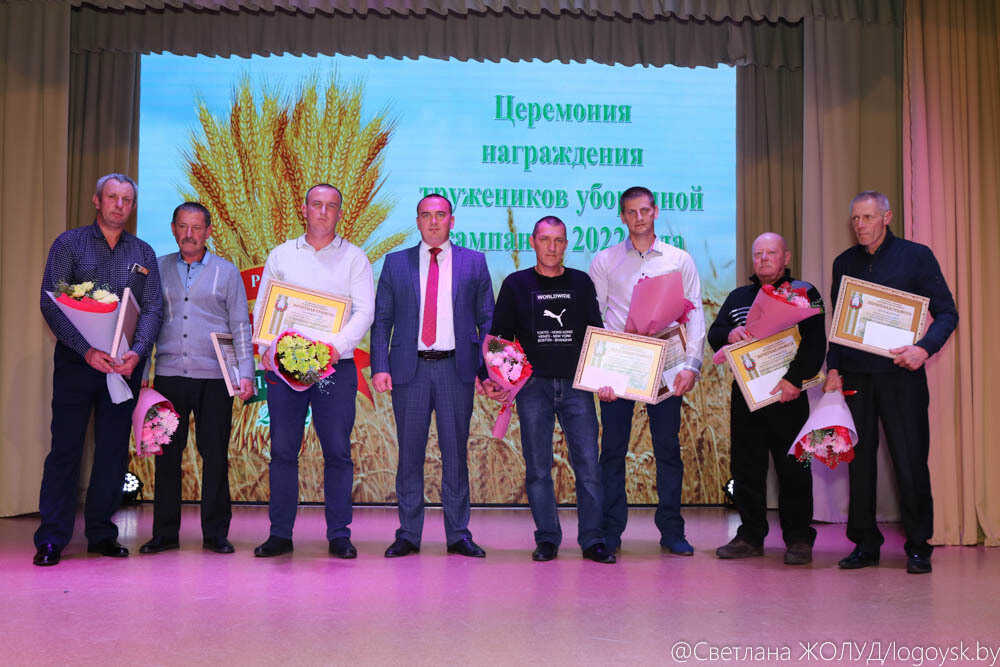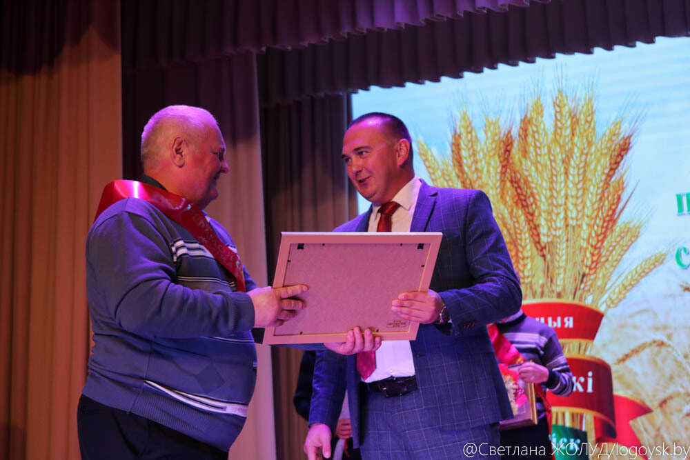 А пока вернемся в зал РЦК, где на сцену один за другим поднимались победители районного соревнования на жатве. Среди хозяйств тройка лидеров в этом году выглядит так: СК "Логойский", ОАО "Косино", СК "Трайпл-Агро".