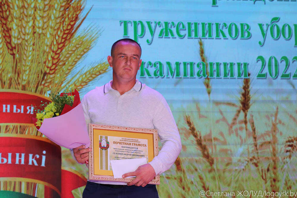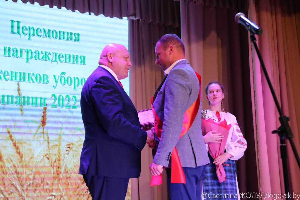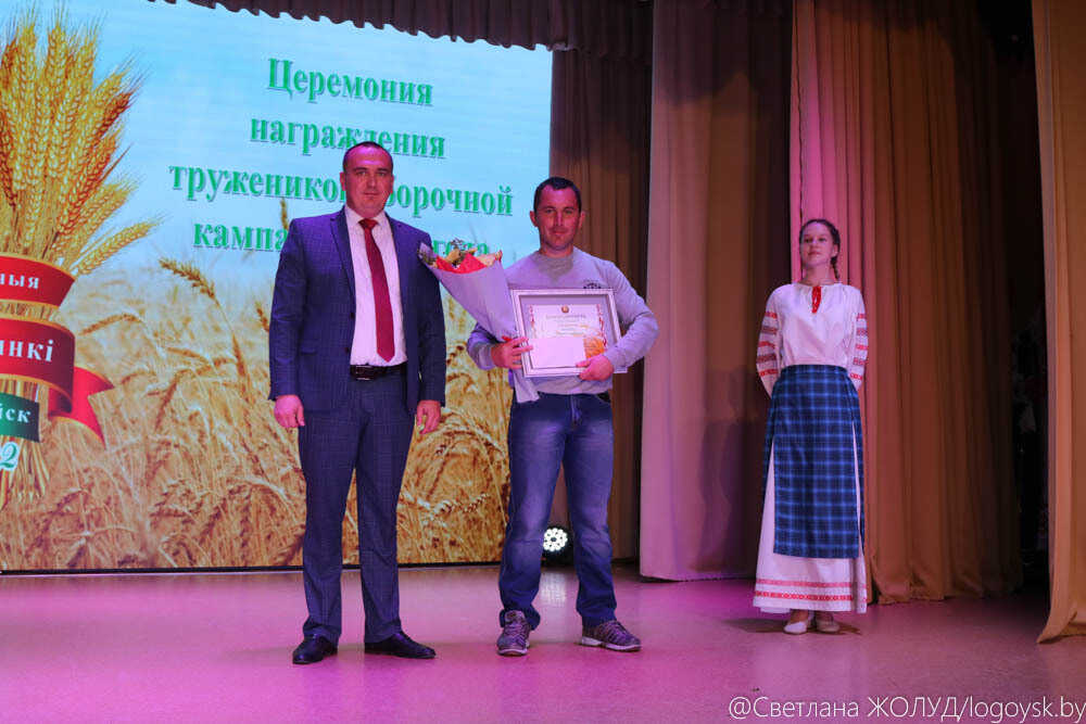 В 2022-м хлеборобы Логойщины собрали около 80 тысяч тонн зерна. Это один из лучших показателей за последние годы. На районном празднике тружеников села председатель райисполкома Александр Ласевич говорил о том, что нашим сельчанам по силам взять и 100-тысячный рубеж. Но такая задача поставлена на следующий год. А в этом те, кто в самый жаркий летний месяц август собирал до зернышка выращенный урожай, получили заслуженные награды.