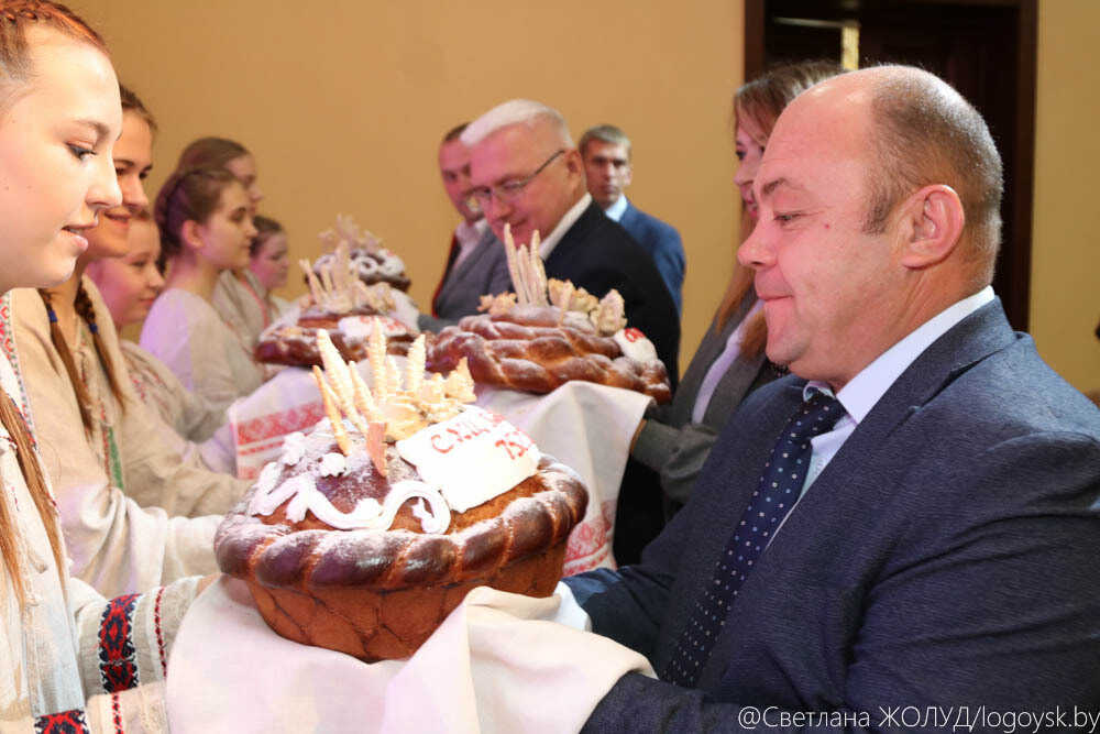 Не обошлось, конечно же, в этот день и без караваев, которые вручили главе района и руководителям всех хозяйств.