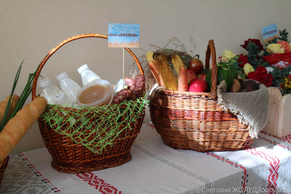Проходило мероприятие в районном Центре культуры. Уже в фойе даже несведущему человеку можно было догадаться, на какой праздник он попал. Тут были и выставка караваев и продуктовых корзин от каждого хозяйства, и роллапы, расказывающие о них, и соответствующие тематические композиции.