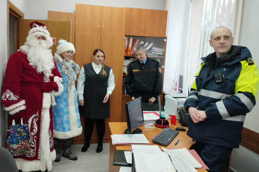 Милицейские Дед Мороз и Снегурочка в исполнении оперуполномоченного отделения уголовного розыска Дмитрия Кранцевича и старшего инспектора по административной практике отделения ГАИ Елены Ткаченко при поддержке сотрудников группы кадров и инспекции по делам несовершеннолетних провели «новогодний рейд» по Логойскому району и г. Логойску. Самым нежданным, но в то же время удивительным стал визит сказочных героев в детский дом семейного типа Богдановичей в д. Гостиловичи, где воспитываются шестеро детей младшего школьного возраста. Каждый из них с удовольствием исполнил свой праздничный номер для Деда Мороза и Снегурочки, поводили хоровод вокруг нарядной елки. После этого каждому маленькому жителю дома достался подарок, приобретенный за счет средств офицерского собрания Логойского РОВД.