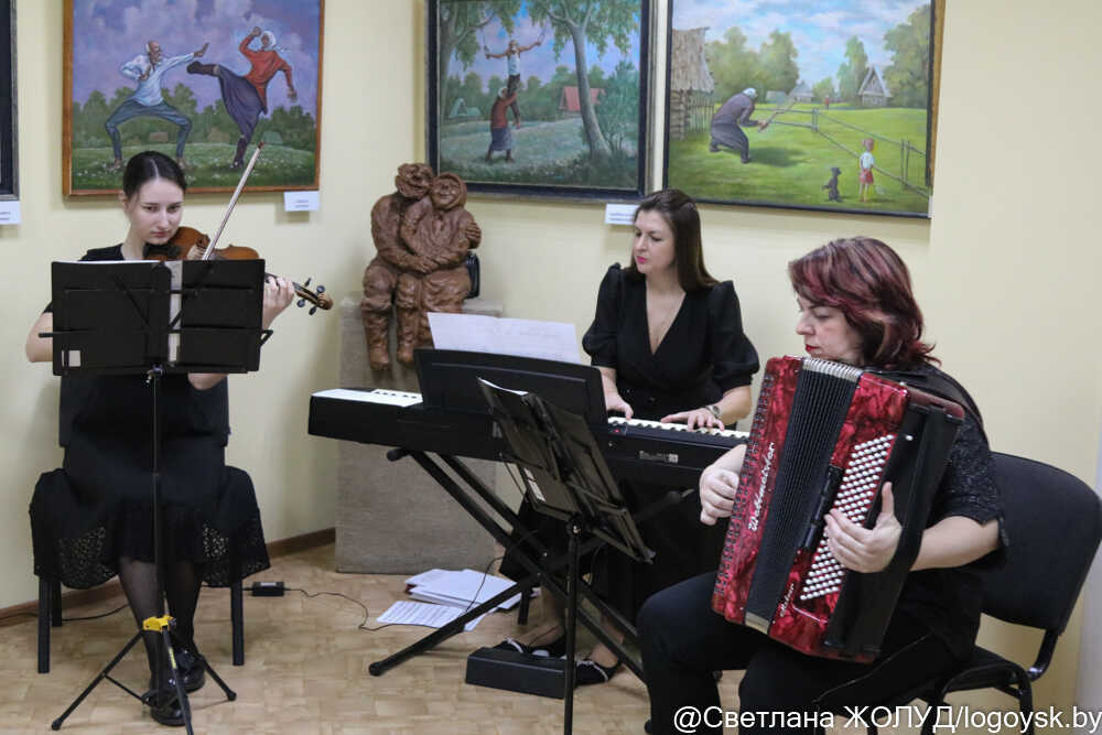 На протяжении торжества праздничное романтическое настроение создавало трио «Вдохновение». Все желающие могли получить подарок в виде портрета-зарисовки от жодинского художника Александра Казака. Он же является преподавателем в местной школе искусств. Его сын – Леонард награжден дипломом 1 степени.