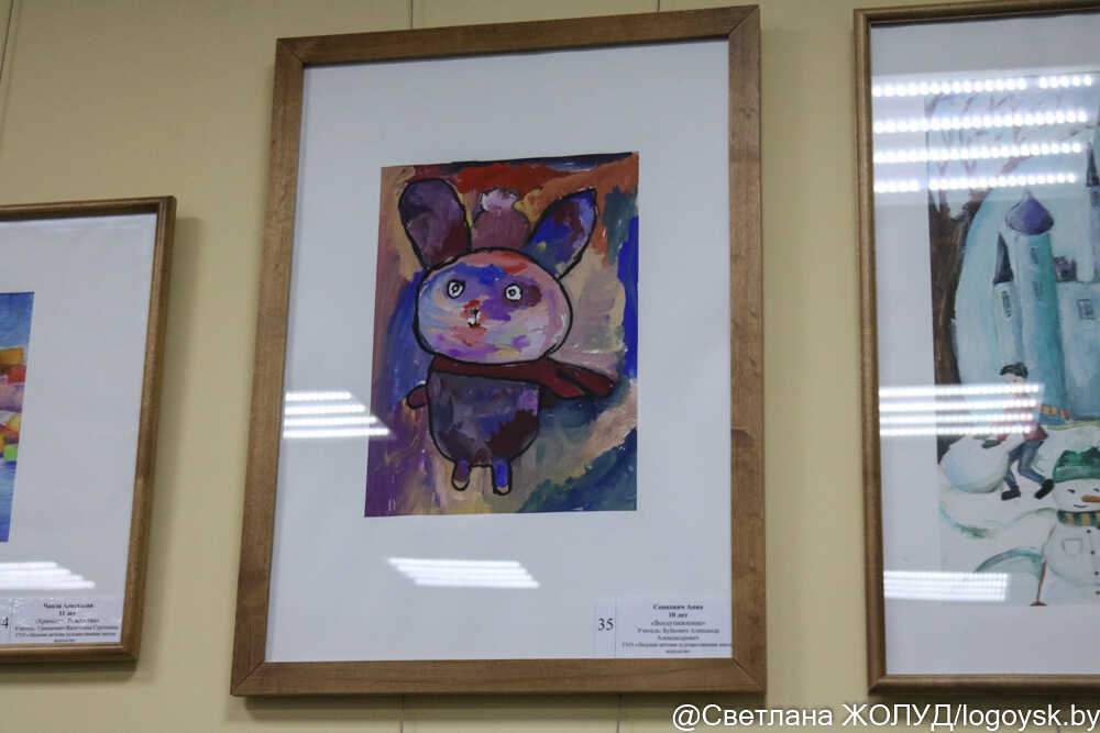 Среди множества представленных работ взглядом цепляюсь за одну. На ней, как-то по-детски наивно, нарисован зверек. Среди присутствующих нахожу автора Анну Сенкевич. Девочка приехала из Лиды. Мое чутье меня не подвело. Как оказалось, эта работа – ее первая. Она только осенью переступила порог художественной школы. И сразу конкурс.