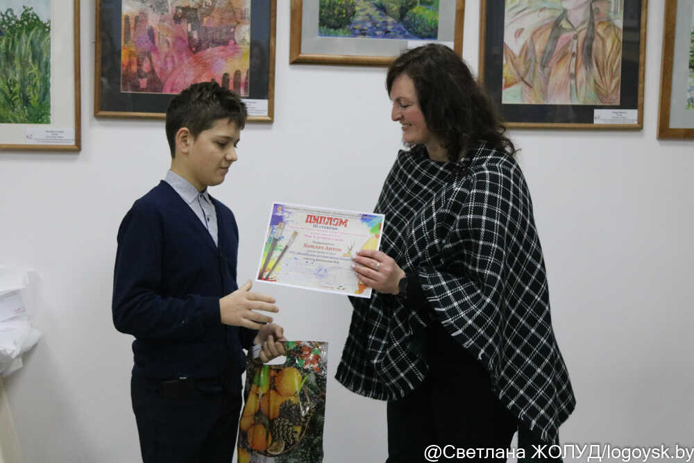 А мне хочется поздравить наших земляков Алису Лапковскую, Артема Павловского, Ксению Брагину, Павла Насевича, Алену Богайчук, Лиору Николь, Владу Вильтовскую и Леониду Ермак с дипломами. Ведь ничего в жизни не происходит просто так. И если вы однажды взяли в руки кисти, сделали свой первый мазок – значит это для чего-то нужно. Дерзайте! Творите! Пусть эти награды будут началом вашего пути к прекрасному.