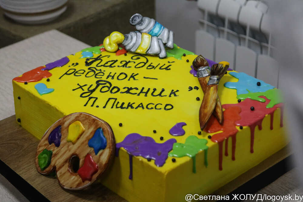 В завершении праздника кондитер Ольга Ермак преподнесла всем присутствующим кулинарный подарок – необыкновенно вкусный торт в виде сложенного этюдника с красками и кистями – истинное творение художника.