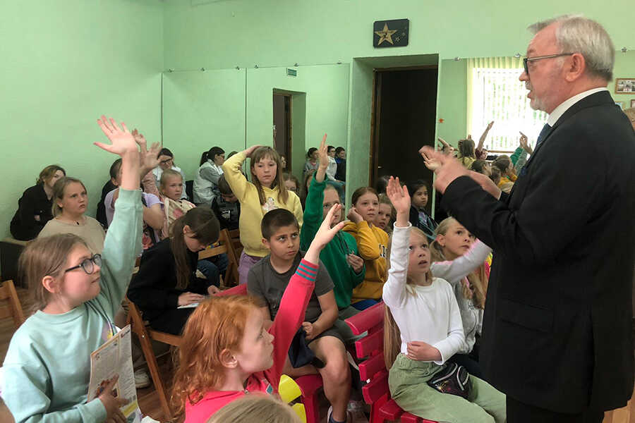Михаил Павлович зачитал школьникам свои стихи, скороговорки, загадывал ребятам загадки.