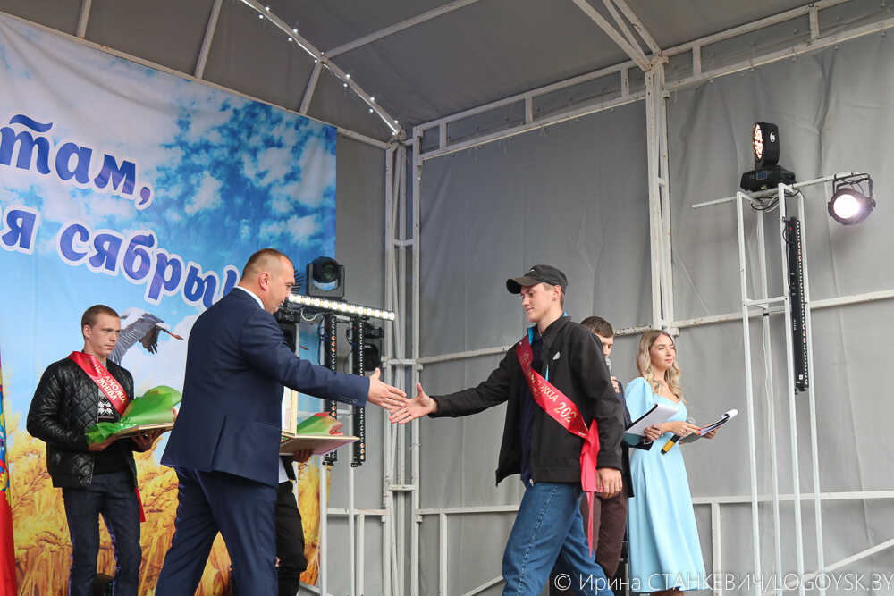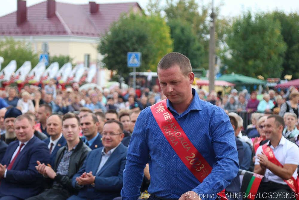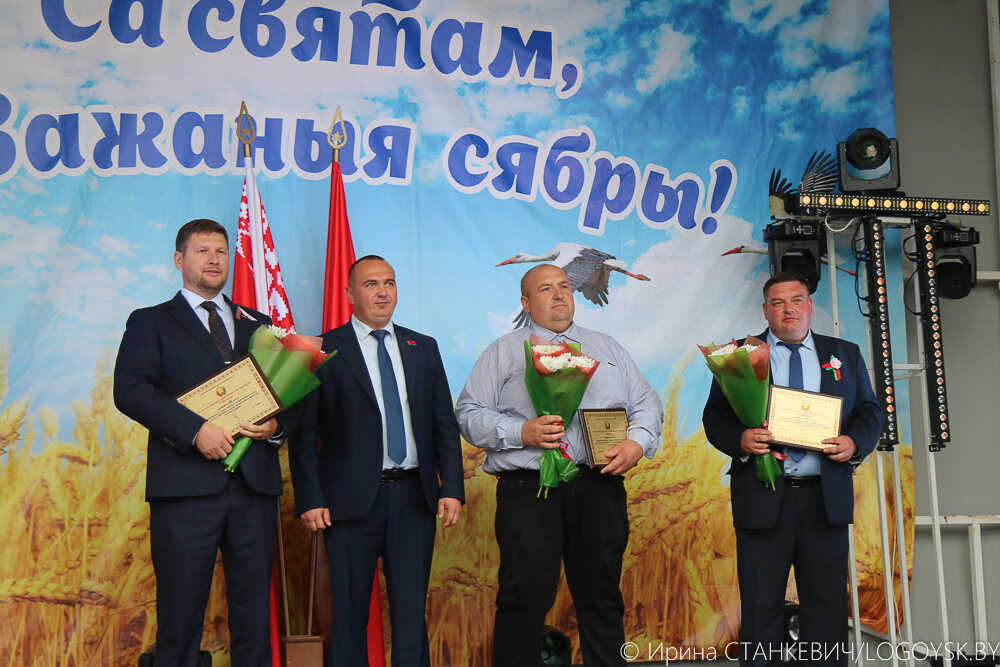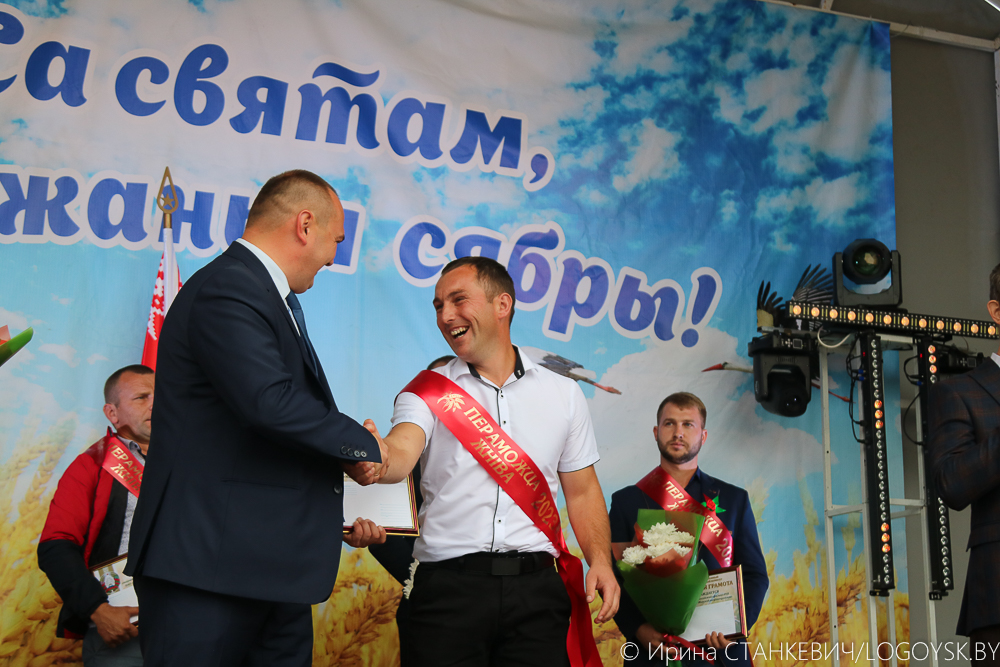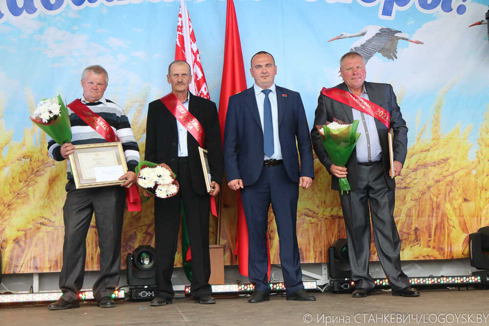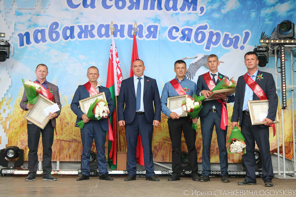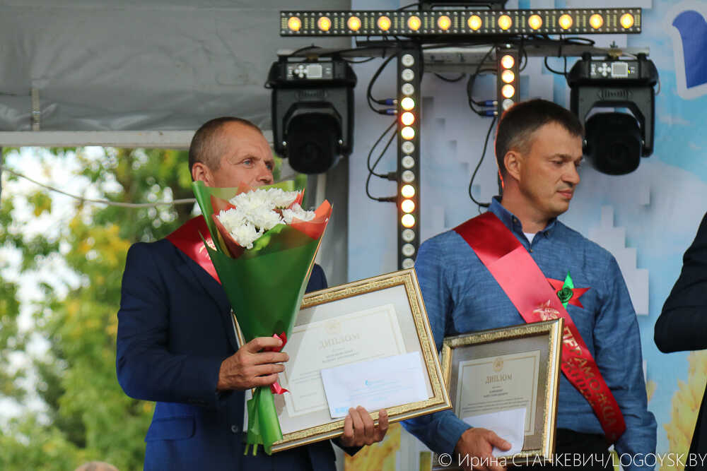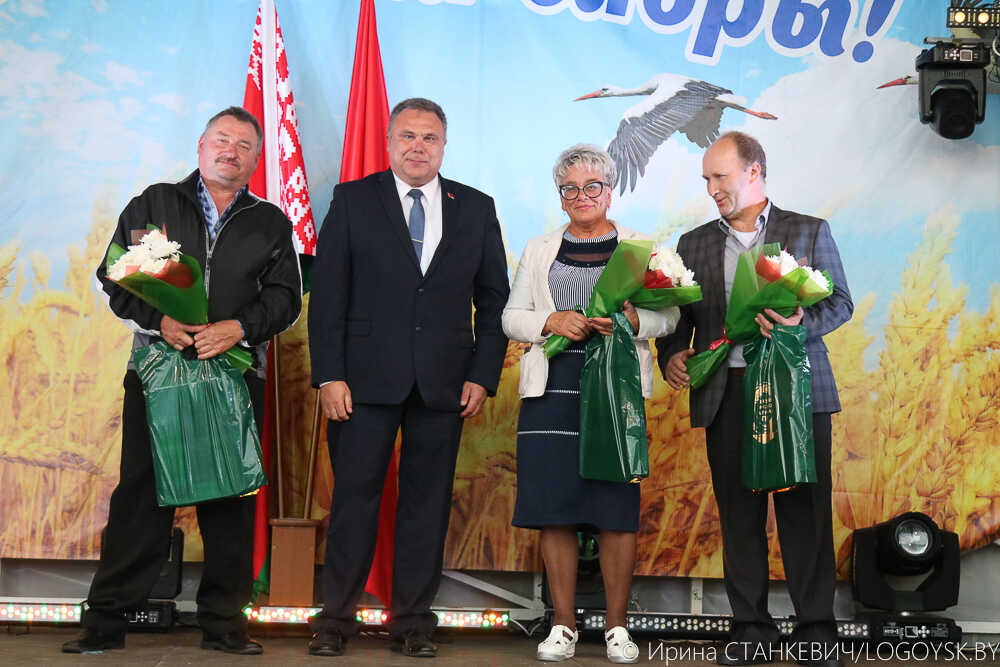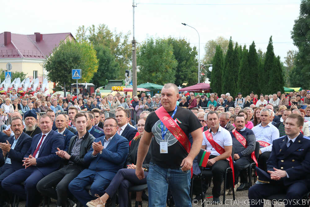 А затем Александр Георгиевич обратился к собравшимся. Он отметил, что год этот был непростой для земледельцев. Однако и в сложных условиях многие из них смогли добиться неплохих результатов. Так, например, из 70 экипажей комбайнеров, 12 сжали более 1000 тонн зерна, два стали двухтысячниками, а Сергей Рудак и Павел Навицкий из СК "Логойский" взяли трехтысячный рубеж.