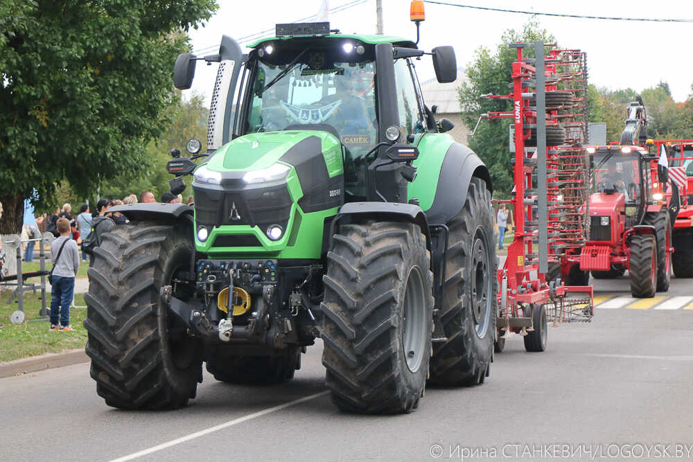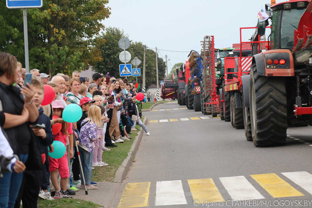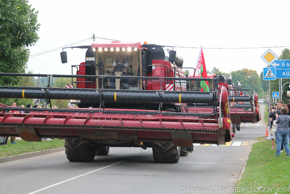 Началась основная часть праздника с парада техники. По центральной улице Плещениц проехали машины, на которых работают аграрии.