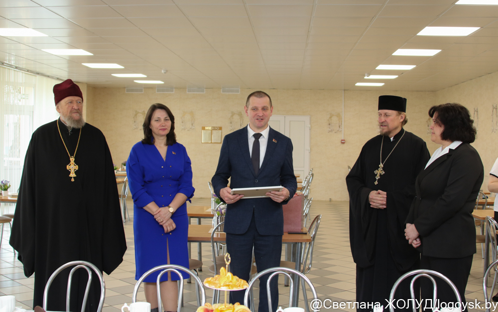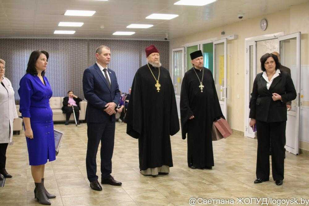 Сегодня здесь побывали председатель райисполкома Сергей Зубель, его заместитель Анжела Раемская, а также благочинный Логойского церковного округа протоиерей Александр Зимницкий и настоятель храма святителя Николая Чудотворца Владимир Шейдак. Директор пансионата Марина Драгун познакомила гостей с историей этого социального учреждения и провела для них экскурсию.
